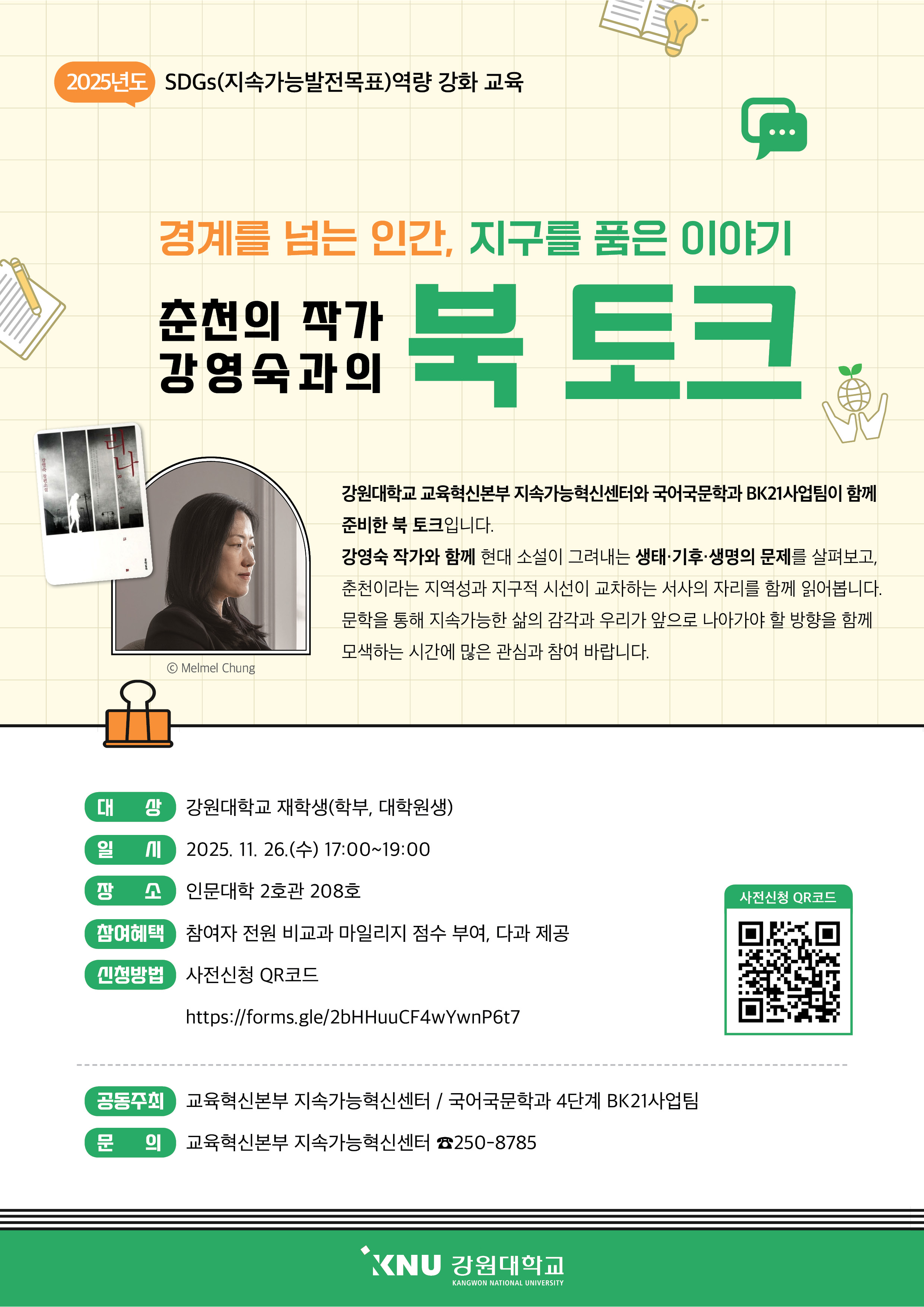 2. 교육주제: 경계를 넘는 인간, 지구를 품은 이야기-춘천의 작가 강영숙과의 북토크