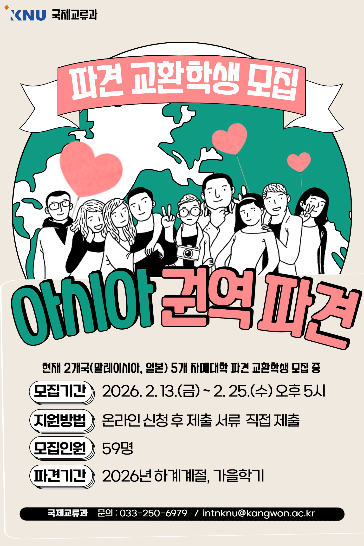 2026학년도 하계 계절학기 및 2학기 아시아 파견 교환학생 모집 홍보
