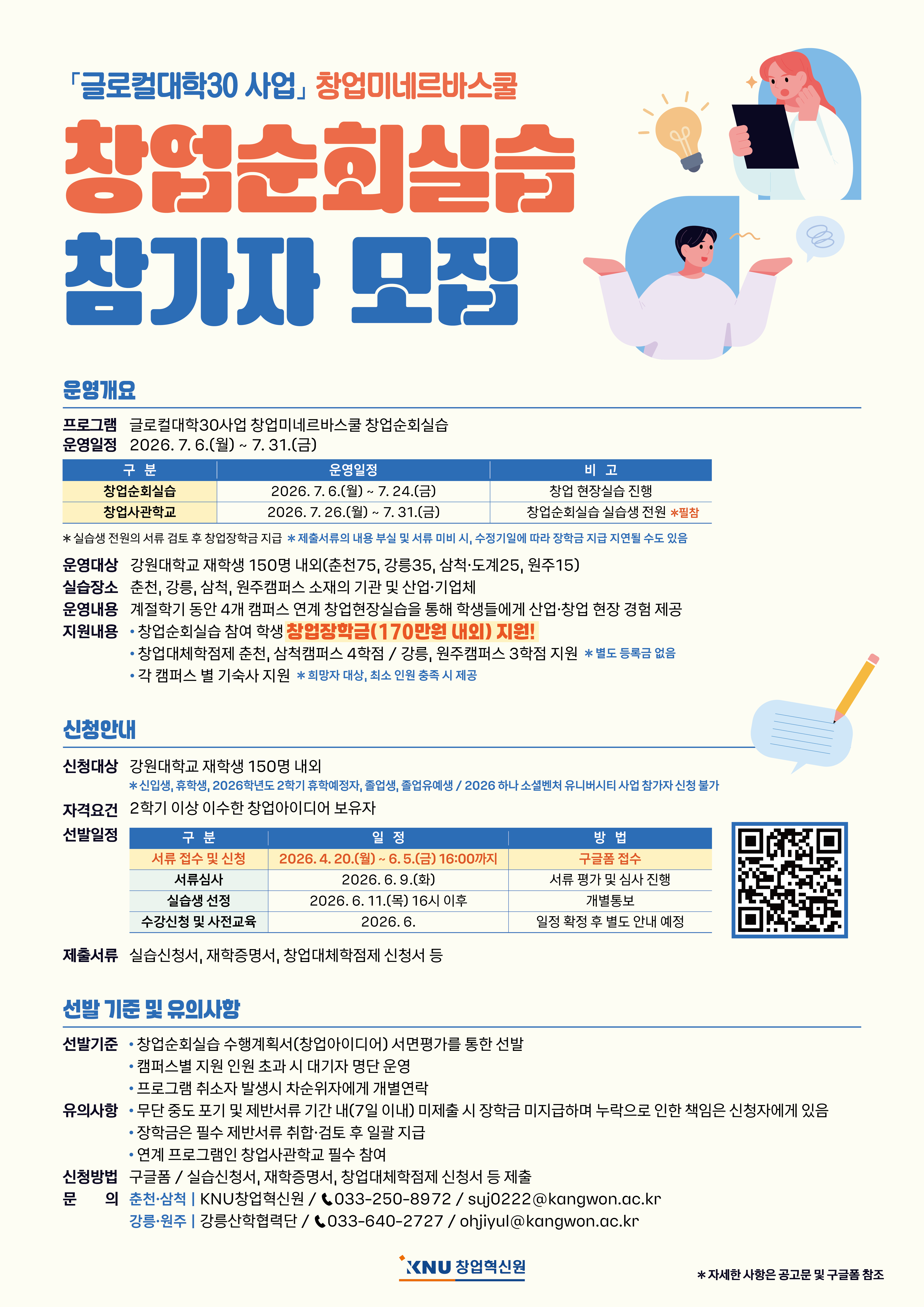 가. 프로그램: 2026 글로컬대학30 사업 창업미네르바스쿨 창업순회실습 프로그램